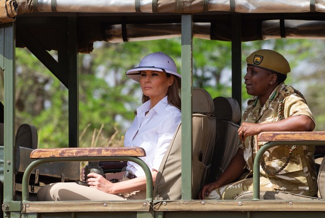 केन्या। अमेरिका के राष्ट्रपति डॉनल्ड ट्रंप की पत्नी और फर्स्ट लेडी मेलानिया ट्रंप एक बार फिर अपने पहनावे को लेकर ट्रोल हो रही हैं। केन्या में सफारी की सैर के दौरान मेलानिया ने सफेद रंग का हेल्मेट पहन रखा है। हालांकि, तस्वीरों में पूरी तरह से मस्ती के अंदाज में नजर आ रहीं पूर्व मॉडल की अपने ही देश में काफी आलोचना हो रही है। दरअसल, मेलानिया ने जो हेल्मेट पहना है उसे औपनिवेशिक दौर की पहचान के तौर पर देखा जाता है और इस वजह से उनकी आलोचना हो रही है।ब्रिटिश उपनिवेशवाद के दौर में ऐसा हेल्मेट अंग्रेज अफसर पहना करते थे और इस वजह से उनकी काफी आलोचना हो रही है। इससे पहले भी मेलानिया प्रवासी बच्चों के कैंप में जाते वक्त मैं परवाह नहीं करती कैप्शन वाले अपने जैकेट के कारण ट्रोल हो चुकी हैं। मेलानिया अफ्रीका के दौरे पर अकेले ही आईं हैं और उन्होंने यहां वन्य जीवों के साथ अच्छा समय बिताया। नैरोबी में डेविड शेल्ड्रिक वाइल्डलाइफ ट्रस्ट में उन्हें मौज-मस्ती करते देखा जा रहा है। यूएस की फर्स्ट लेडी ने यहां एक बच्चे हाथी को अपने हाथों से दूध भी पिलाया। हालांकि, कुछ लोग ऐसा भी कह रहे हैं मेलानिया ने जैसा आउटफिट पहना, वह अभिनेत्री मेरिल स्ट्रीप की एक फिल्म की नकल है। 1985 में मेरिल की फिल्म आउट ऑफ अफ्रीका में उन्होंने केन्या में रहनेवाली एक डैनिश लेखिका का किरदार निभाया था।